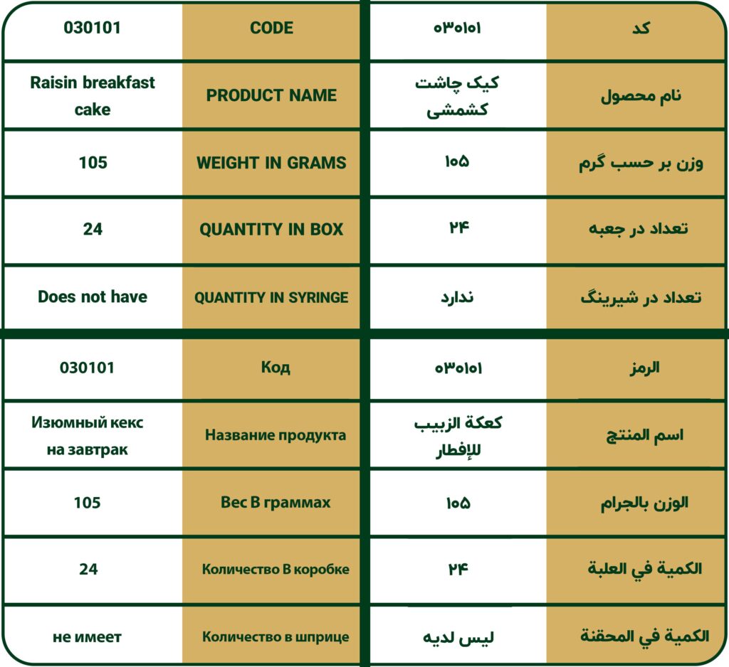 کیک چاشت کشمشی شیرین ناب، با کد محصول 030101، محصولی لذت‌بخش و مغذی از شیرین ناب است که در بسته‌بندی‌های 24 عددی عرضه می‌شود. این کیک‌های کوچک و دوست‌داشتنی، با بافتی نرم و لطیف و طعمی دلپذیر، ترکیبی از شیرینی کیک و مزه شیرین و ملس کشمش‌های مرغوب را ارائه می‌دهند. کشمش‌های به کار رفته در این کیک، علاوه بر افزودن طعمی دلنشین، ارزش غذایی آن را نیز افزایش می‌دهند و آن را به گزینه‌ای ایده‌آل برای یک میان‌وعده سالم و انرژی‌بخش در طول روز، به ویژه برای کودکان و دانش‌آموزان، تبدیل می‌کنند. بسته‌بندی 24 عددی این محصول، آن را برای مصرف خانگی، مدارس، و محل کار بسیار کاربردی و اقتصادی می‌سازد.